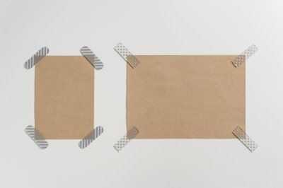 掲示物の裏面に仕込む両面シール仕様です。